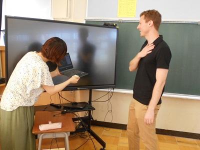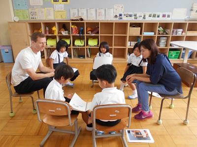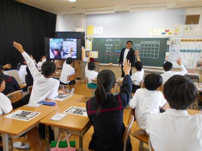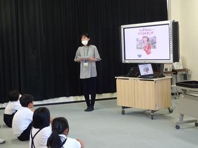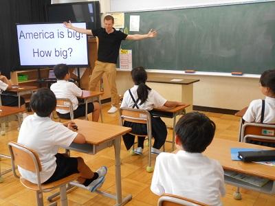 新ALTのジャスティン先生との授業が始まりました。ジャスティン先生のプレゼンや英語での話(時々、日本語も交ります!)に子ども達は興味津々!その後、1人ずつ英語で「My name is~・Ⅰ like~!」と一生懸命自己紹介することができました。Let’s enjoy English class from now on!