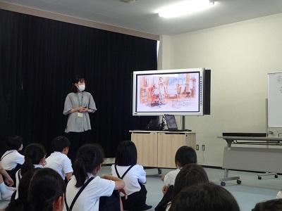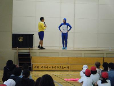 1/27(月),のまりんこと野間 成之先生にご来校いただき,『紙芝居』をしていただきました。低学年と高学年に分かれての鑑賞でしたが,どちらも野間先生の巧みな語りと豊かな表情に,あっという間にお話の世界にひきこまれていました。
