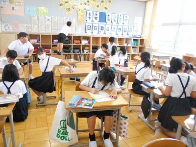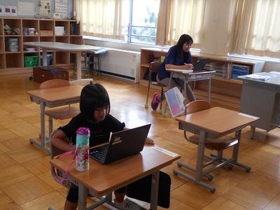 8/22(木)は,全校登校日でした。夏休み中に取り組んだ科学・自由研究や工作・絵・習字などを紹介したり,思い出を語り合ったりと,楽しそうに交流する姿が,どのクラスでも見られました。