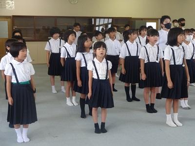 台風の影響が心配されましたが、通常通り2学期を始めることができ、静かだった校舎に、元気な子ども達の声が戻ってきました。皆と声を合わせて校歌を歌ったり、背筋をピンと伸ばして話を聞いたり、楽しく友だちと関わり合ったりする姿を久しぶりに見ることができて、嬉しくなりました。2学期は、たくさんの行事や活動があります。目標をもって取り組み、自分の力を伸ばしていってほしいと思います。
