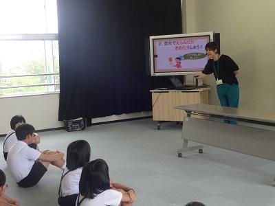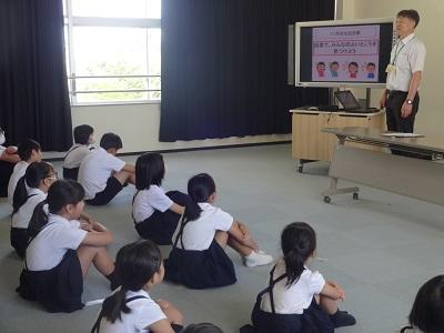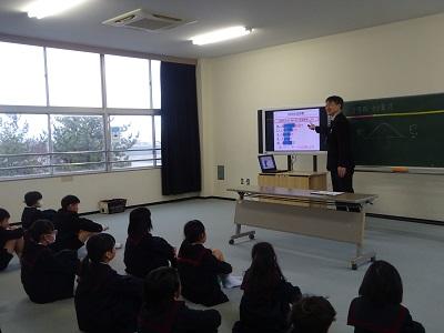 6限目に5.6年生対象に、いじめ予防教室を実施しました。金沢の法律事務所の弁護士の方を講師にお招きし、「いじめがどうして悪いことなのか」について話していただきました。子ども達は具体的事例を聞きながら、「いじめ」について真剣に考えていました。