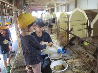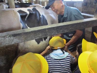 谷内牧場へ行き、牧場の様子を見学させていただきました。谷内さんや獣医の松田さんからお話をうかがいました。子牛にミルクを飲ませたり、聴診器をあてて音を聴いたりと、普段できないような、貴重な体験をさせていただきました。今朝ちょうど産まれた乳牛の赤ちゃんも見ることができ、子どもたちはとても嬉しそうでした。谷内牧場のみなさんありがとうございました。