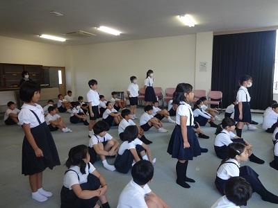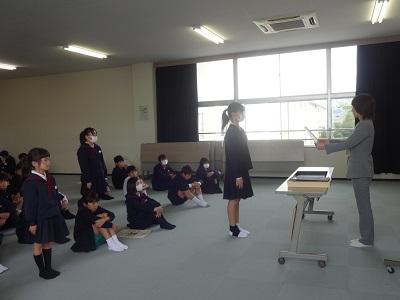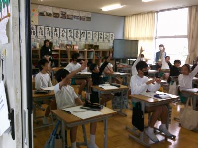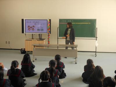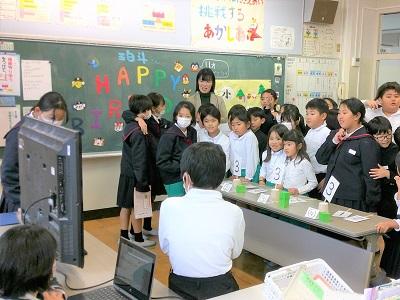 ALTのリリィ先生がもうすぐ帰国されるので、各学年でお別れ会をしました。1.2年生はフルーツバスケット、3.4年生は英語での椅子取りゲームをリリィ先生と一緒に楽しみました。5.6年生はこれまで学習したことを発表し、リリィ先生に聞いていただきました。みんなリリィ先生のことが大好きです。最後に楽しいひと時を一緒に過ごすことができました。
