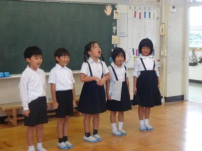 今月の歌「ゴーゴーゴー」の合唱では、赤組、白組どちらも熱が入った歌声で、運動会での勝負が本当に楽しみです!