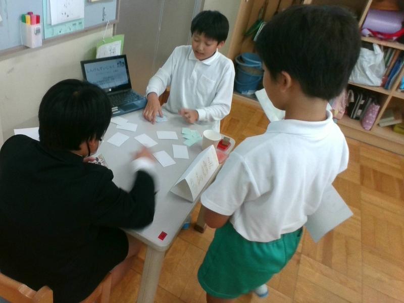 1年生の国語「ものの名まえ」の学習で、おみせやさんごっこをしました。1年生がお店を開き、2年生がお客さんになり、やりとりをしました。2年生は1年生が作ったかわいらしい商品をうれしそうに選んでいました。代金やおつりの計算のお手伝いもしてくれました。