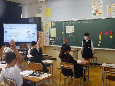 毎日の授業の中で、一人一台端末やデジタル教材を活用して、学習を進めています。自分の考えを記録して友達と見合ったり、分からないことを調べたりと、スムーズに使っている姿に頼もしさを感じます。