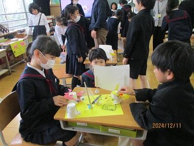 1.2年生が合同で「年長さんをむかえる会」を行いました。劇や折り紙のプレゼント、なわとびや九九の発表など、小学校でするお勉強の紹介をしました。学校探検で手をつないで教室を案内しました。4月に1年生として入学してくれるのが楽しみですね。
