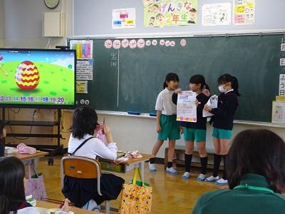 児童会タイムでは、運営委員会が「なぞなぞクイズ」をしてくれました。レベルアップしていくクイズで、よい頭の体操になりました。