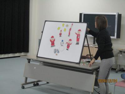 12/24(火)3限目に,クリスマス・パネルシアターが行われました。「金のがちょう」「かさじぞう」「ほしのクリスマス」など,素敵な音楽や語りに合わせた動きに,子ども達はすっかりお話の世界に引き込まれていました。ブラックライトを使ったパネルシアターもあり,色と光の美しさもとても綺麗でした。(写真でお見せできないのが残念です!)