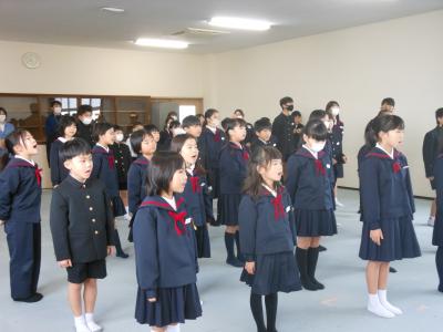 まず元気な声で校歌を歌い,読書賞(150冊達成)と西っ子チャレンジ賞(100枚達成)の表彰を行いました。どちらもこつこつ続けた努力に拍手です。その後の校長先生の話と冬休みの生活についての話も,真剣に聞くことができました。きっと楽しい冬休みにしてくれると思います。