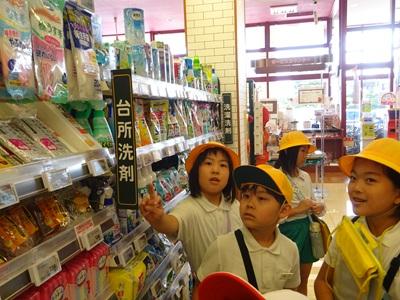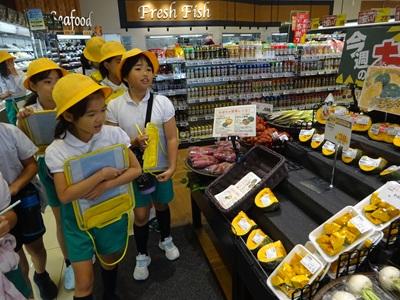 1.2年生 生活科、3年生 社会の学習で、マルエーに見学に行きました。3つのグループに分かれ、それぞれマルエーのスーパー、お花屋さん、ここの音さんのお店を見学しました。普段見ることができないバックヤードを見せていただいたり、お花を生けさせていただいたり、たい焼きなどの作り方を教えていただいたりしました。子ども達の質問にも答えていただきました。子ども達は初めて知ることばかりで、とても驚いていました。貴重な経験をさせていただきありがとうございました。