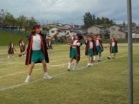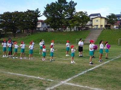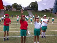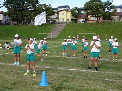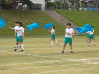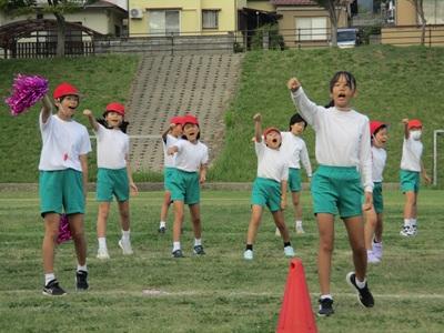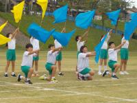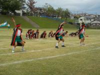 1~3年生は元気いっぱいのよさこいを、4~6年生は一糸乱れぬフラッグの演技を披露しました。