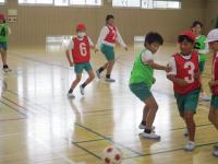 最後に、実践形式の試合を行いました。どの子も一生懸命にボールを追いかけ、チームメイトに優しく声をかけていました。