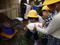 また、仕事体験もさせていただきました。1・2年生は子牛の哺乳体験、3・4年生は搾乳体験、5・6年生は子牛の餌やり体験をしました。みんな真剣に取り組んでいました。