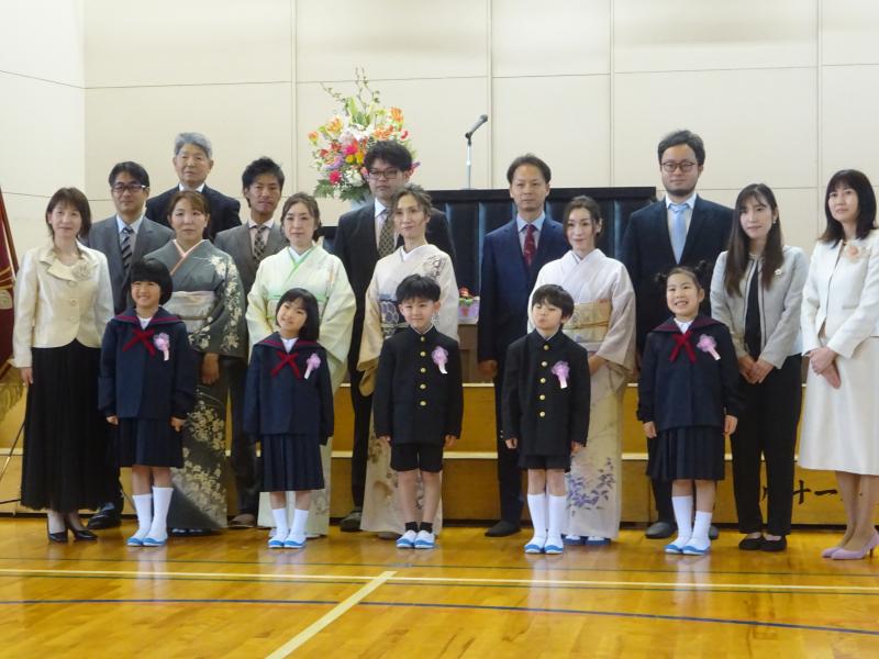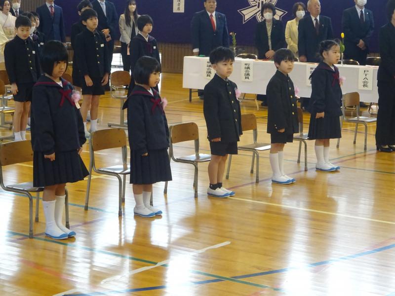 4月9日(火)、内灘町の他の小学校より1日遅れて「入学式」が行われました。今年度も鶴ケ丘小学校の校舎を借りてのスタートとなり、鶴ケ丘小学校体育館での入学式です。あいにくの雨模様となりましたが、式に参加した新1年生は、緊張しながらも元気に返事をしたり、一生懸命お話を聞いたりと、大変立派な態度でした。5名の「ピカピカの1年生」を迎えた在校生も、とてもうれしそうでした。微笑ましい1年生の姿に、温かい雰囲気に包まれた、すてきな入学式になりました。
