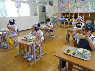 1年生は、はじめての遊具遊び、はじめての給食と、たくさんの「はじめて」がありました。遊具遊びでは、高いジャングルジムにドキドキしながら登り、みんな嬉しそうでした。給食では上手に盛り付けし、順調に準備ができました。これからもいっぱい遊び、モリモリ食べて、元気いっぱいに過ごしてほしいと願っています。