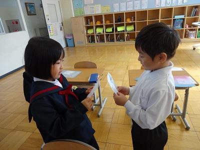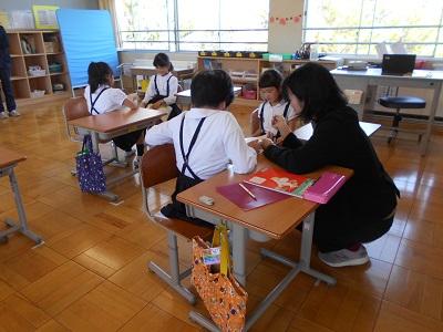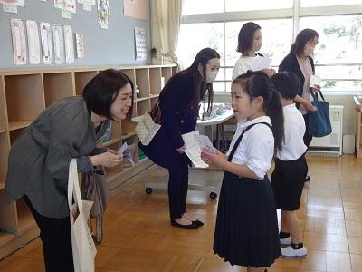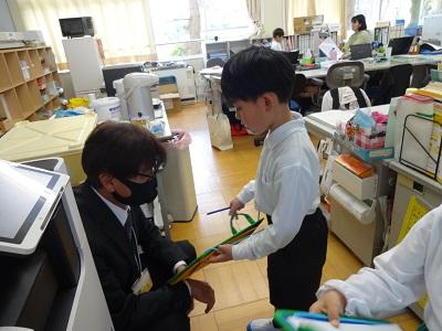 国語「どうぞよろしく」の学習では、お友だち、お友だちの家族、先生に自己紹介をします。先日の授業参観では、子ども達の自己紹介を聞いていただき、ありがとうございました。今日は職員室の先生方に自己紹介をし、サインをもらいました。たくさんサインを集めてみんなにっこりでした。