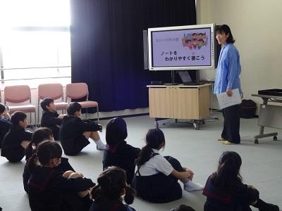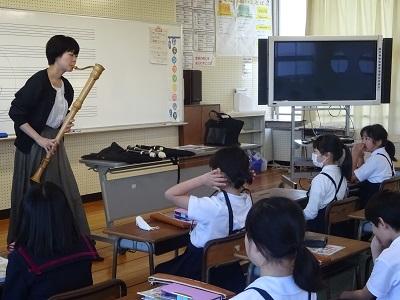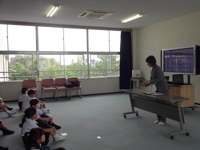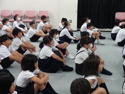 3.4年合同でリコーダー講習会を行いました。講師の井川由紀先生から、リコーダーを演奏する時のコツを教えていただき、きれいな音を響かせることができました。最後にいろんな大きさのリコーダーの演奏を聴き、音の高さの違いを楽しんでいました。