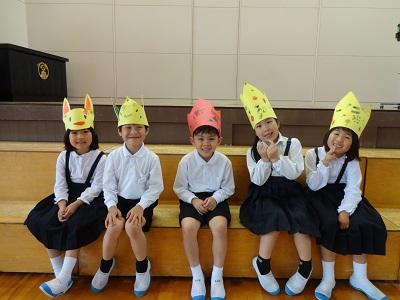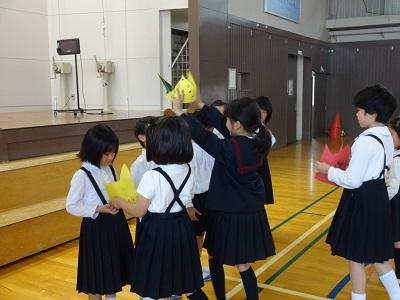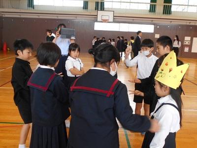 全校児童が体育館に集まり「1年生をむかえる会」を行いました。1年生の紹介、プレゼント渡し(2年生が作ってくれた冠です!)そして、なかよし班対抗のゲームと、運営委員の進行で、スムーズに活動することができました。この会を通して、西っ子みんなの絆が深まったように思います。本当に楽しい一時になりました。