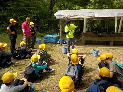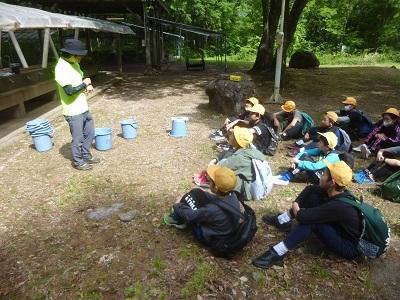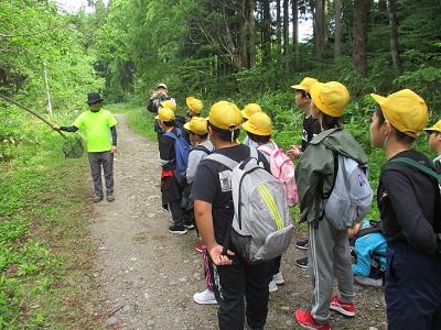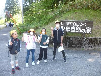 今年は白山ろく少年自然の家での宿泊体験学習です。1日目は白山中宮展示館でのクイズラリーに始まり、入所式、ジオハイキング、キャンプファイヤーをして就寝。2日目は朝のつどい、いわな活動、ジオオリエンテーリング、退所式。2日間とも天候に恵まれ、大自然の中で全ての活動を予定通り行うことができました。