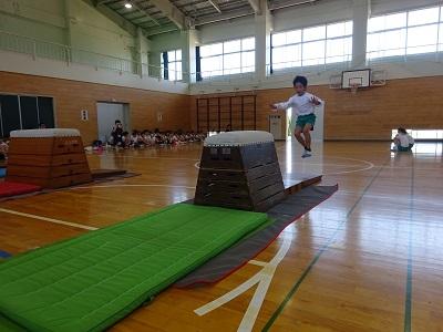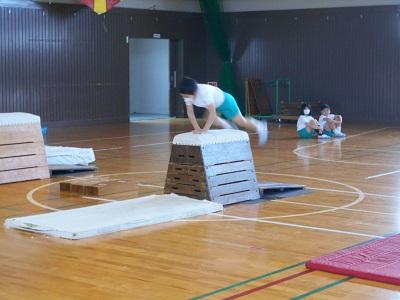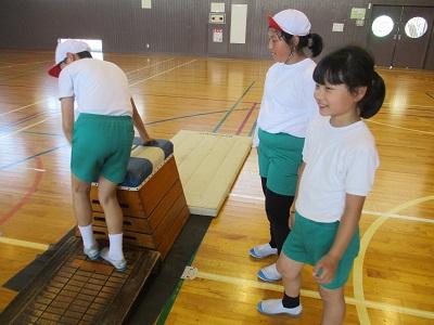 6月に行われる器械運動交歓会に向け、練習が始まりました。とび箱・鉄棒・マットの中から自分がやりたい種目を選び演技を披露します。今までとび箱がとべなかった子が「とべた~!」と嬉しそうに喜ぶ姿が印象的でした。みんなでめあてを決め、励まし合いながら取り組んでいきたいと思っています。