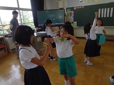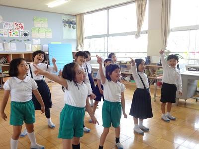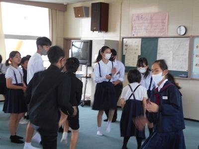 今日はボディーパーカッションを中心に練習です。56年生が34年生に振り付けを教え,難しいところは皆で確認しながら進めていきました。仕上がりが楽しみです!