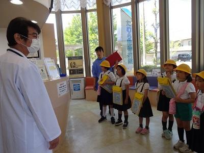 生活科で”たむら動物病院”へ町たんけんに行きました。犬やねこを検査する機械やお薬を見せていただき、人間と同じように病気やケガを治していることに驚いていました。入院中の犬やねこにも会えて嬉しそうでした。