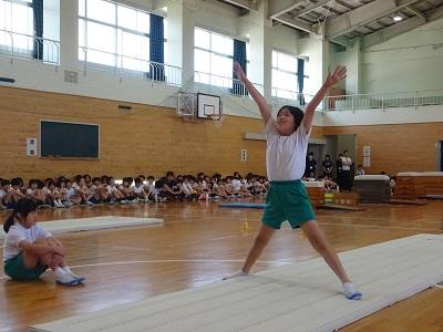 今日は4日の校内発表会に向けてのリハーサルです。よい緊張感の中、名前を言ってから技を披露します。自分の発表を終えた後、ホッとした表情を浮かべる子が多かったです。6/5(水)の本番まであと少し!さらに技に磨きをかけていきましょう!