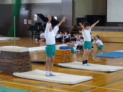 器械運動交歓会に向けて、みんなで一生懸命練習に取り組んでいます。5.6年生に技のコツなどを教わりました。2週間後の本番に向け、真剣にアドバイスを聞き、何度もチャレンジする姿がとても素敵でした。5.6年生のみなさんありがとう。