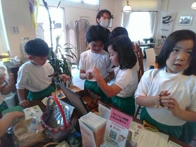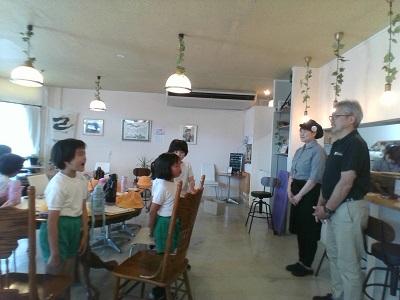鶴ケ丘地区のたんけんに行きました。今日たんけんにおじゃましたのは「結カフェ」さんです。質問に答えてくださり、中を見せてくださったりしました。おいしそうなにおいや、たのしそうなおもちゃに子ども達はワクワクしていました。