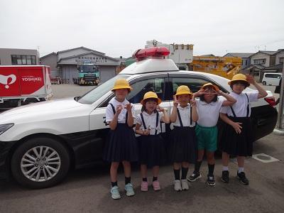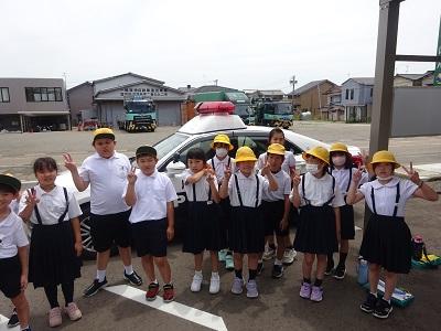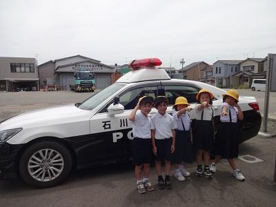 1.2年生は生活科、3.4年生は総合の学習で、内灘交番へ見学に行きました。パトカーの中を見せていただき、たくさんの質問にも答えていただきました。みんなが安心して暮らせるのは、警察官の方々のおかげだと改めて感じました。