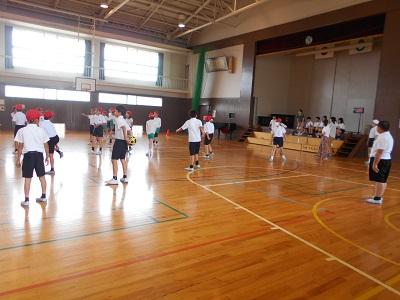 そして、ドッジボール大会では、ボールを投げたり、受け止めたり、よけたり、当たったりと、笑顔で楽しむ姿がたくさん見られました。どちらもよい交流の時間になったと思います。