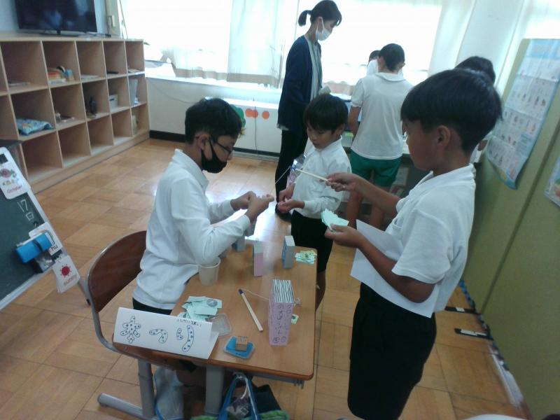 「本探し」や「本の表紙神経衰弱」、「本つり」、「本パズル」の4つのブースを作りました。前期図書委員会としての最後の大きなイベントを成功させようと、頑張りました。