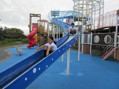 ナディに乗って内灘町立図書館、総合公園へたんけんに行きました。図書館では本を読んでもらい、好きな本を選んで借りました。公園では、遊具で遊んだり秋みつけをしたりしました。