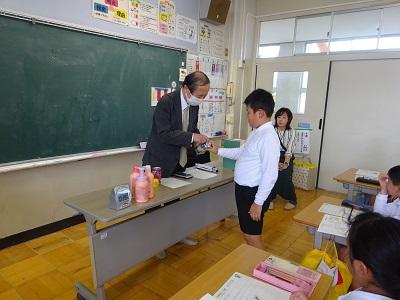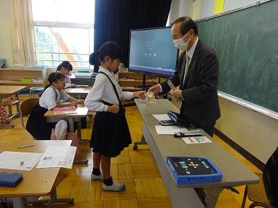 総合「身体の不自由な人とふれ合おう」の学習で、石川県視覚障害者協会の米島さん、藤原さんに来ていただきお話を聞きました。目の見えない方が使う道具や、点字ブロックなどを実際に見てさわって、目の見えない方がどう生活しているか知ることができました。米島さんがおっしゃっていた「うまくいかなくてもチャレンジすることが大切」という言葉が印象に残りました。自分達にできることは何か、総合で考えていきたいと思います。