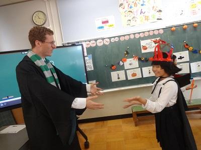 外国語の時間に「ハロウィンパーティー」をしました。ビンゴゲームやフルーツバスケットを通して、ハロウィンの言葉を覚えることができました。みんな仮装して、とてもかわいかったです。