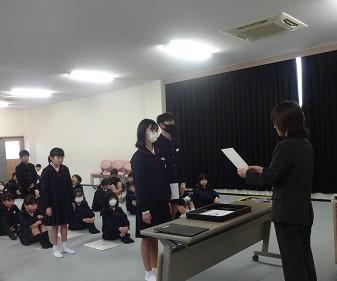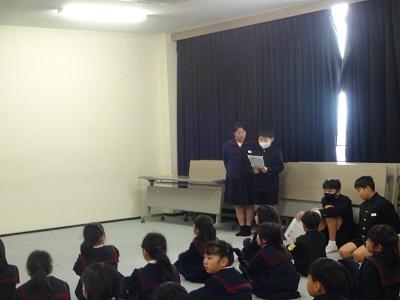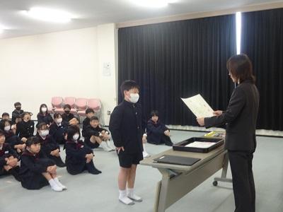 12月2日(月)1限目に、12月の全校集会を行いました。たくさんの表彰に児童の頑張りを感じ、嬉しくなりました。その後、校長先生の話「学びを生かす」、生活目標の話「目標をもって取り組もう」、学習目標の話「根拠や理由をつけて説明しようpart2」と続きましたが、真剣にそしてしっかり反応しながら聴く姿がとても良かったです。