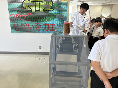 3.4限目にエコラへ見学に行ってきました。ゴミを持ち上げていたゴミクレーンの大きさに驚いていました。分別する機械を見た時は、スチールが磁石にくっつく性質を使い、分別する様子に目を輝かせていました。