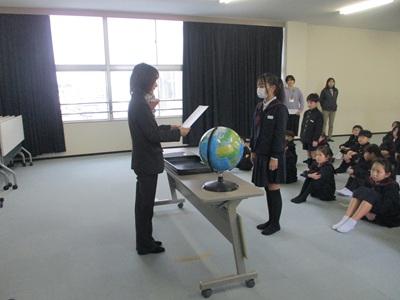 2月の全校集会では、校歌の後に校内書初大会の表彰を行いました。そして、校長先生の話「冬季オリンピック」、学習目標「めざせ!表現力の達人」の話を聴きました。