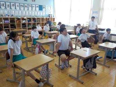 全学年で「こころのサポート授業」を行いました。スクールカウンセラーの滋野井先生から、ストレスとは何か、ストレスへの対処法について教えていただき、ねむりのためのリラックス法や深呼吸を実際に行いました。後日、子ども達のオリジナル対処法を含めた相談室だよりを配布しますので、またお家で読んでみてください。