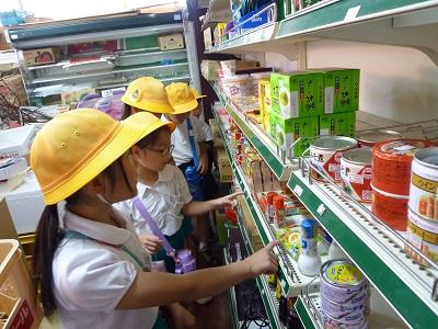 生活・総合の学習で、鶴ケ丘小学校近くの個人商店宝珠さんへ見学行きました。店内を見せていただいたり、お買い物をさせていただいたりしました。給食に出ている野菜の中には宝珠さんが届けてくださっているものもあると知り、子ども達は驚いていました。子ども達は200円で何が買えるか考えて、嬉しそうに買い物をしていました。貴重な体験をさせていただき、ありがとうございました。