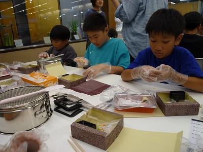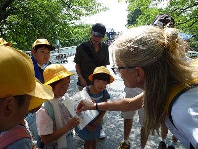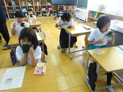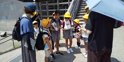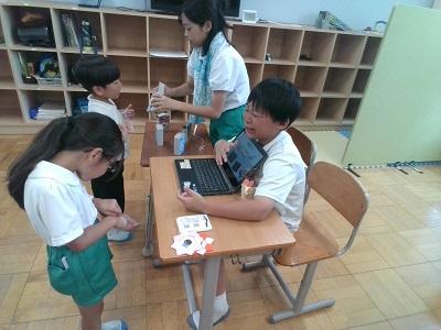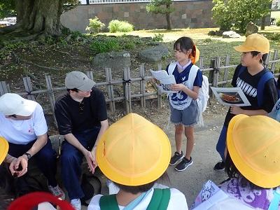 西荒屋小学校のみんなでEnglish Bus Tourに行ってきました。午前中は班にわかれて兼六園を見学してから金沢城に行きました。道で出会った外国の方に”Hello”!”Interview Ok?”と声をかけ、1人ずつ質問したり、石川県のことを紹介したりしました。外国の方が笑顔で答えてくれると、子ども達はとても嬉しそうでした。午後からは和菓子作りを体験しました。きれいに作ろうと一生懸命でした。楽しいバスツアーになりました。