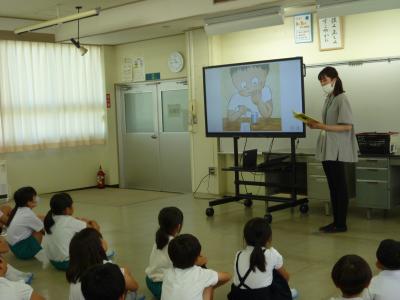 児童会タイムでは、まず企画委員が先月と今月の生活目標について話をした後、図書委員会は掃除に関する本の紹介を、放送委員会はイントロクイズをしてくれました。