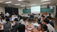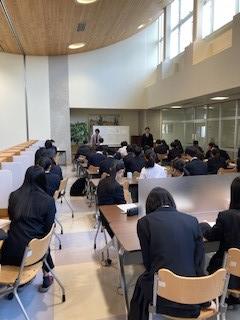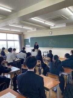 講座では、デートDVとは何か、デートDVが起こる背景や要因、関係性をどう変えていけるか、自分や友達がデートDVを受けていた場合の対応等について、ロールプレイや事例紹介、動画を交えながら、わかりやすくご説明いただきました。また、講師の弘﨑さんからは、①決して暴力をふるわないこと ②「自分らしさ」を大切にすること ③相手を尊重すること という3つの大切なメッセージが伝えられました。生徒の皆さんには、今回の学びを今後の人間関係づくりにぜひ活かしてほしいと思います。