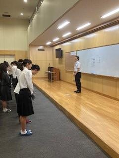 その後、生徒指導課長の小田先生から、今年度は挨拶や時間前登校に改善が見られることに触れ、現在の良い取組を来年度も継続してほしいとのお話がありました。