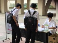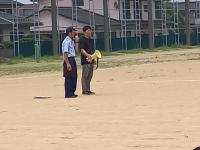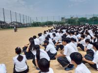 小雨の中、給水ボランティアと応援を行いました。生徒からの掛け声に選手も応えてくれていました。