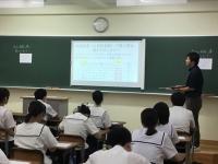 「令和七年度一年生ビブリオバトル」が行われ、各クラスの代表者がプレゼンテーション形式で本の魅力を紹介しました。