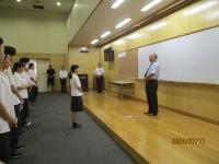 7月11日(木)の昼休みに、高校全国総体総文・北信越大会の激励費授与式が行われました。全国総体には、新体操部・ボウリング部・ライフル射撃部・フェンシング部・少林寺拳法部・弓道部が出場し、全国総文には、競技かるた部・放送部・文芸部・囲碁将棋部が出場します。また、北信越大会には水泳部が出場します。