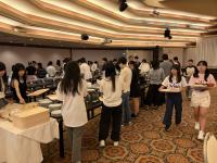 本日の夕食はBBQビュッフェレストランとと和洋中ビュッフェの2つから選択して自由に食べられる豪華ディナーです。BBQでは、イルミネーションをバックにアメリカンなBBQを楽しみました。和洋中ビュッフェでは、たくさんの沖縄料理を含む何十種類もある様々な料理からデザートまで楽しみました。どちらかというとBBQの方が人気だったようですが、生徒たちはここまでの疲れが嘘のように、豪華なディナーを思う存分楽しんでいました。