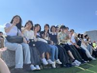 ホテルから1時間半くらい移動して、沖縄美ら海水族館を訪れました。展示されている生き物は石川県のものとは異なるトロピカルな様子に驚いていました。イルカショーの見学、お土産の購入、アイスを食べるなどそれぞれが満喫している様子が見られました。